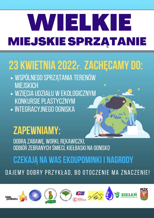 Wszystkim uczestnikom zapewnione są worki na śmieci oraz rękawiczki. W trakcie sprzątania uczestnicy będą mogli wziąć udział w konkursie plastycznym organizowanym w ramach Światowego Dnia Ziemi pod Honorowym Patronatem Prezydenta Miasta Biała Podlaska. Konkurs organizowany przez Fundację Kreacja Magia Rąk skierowany jest do uczniów klas 1-4 i 5-8 szkół podstawowych z terenu miasta.