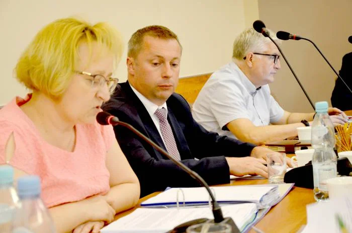 Opis: Od lewej skarbniczka Renata Brońska, burmistrz Leszek Włodarski, sekretarz Jerzy Małek