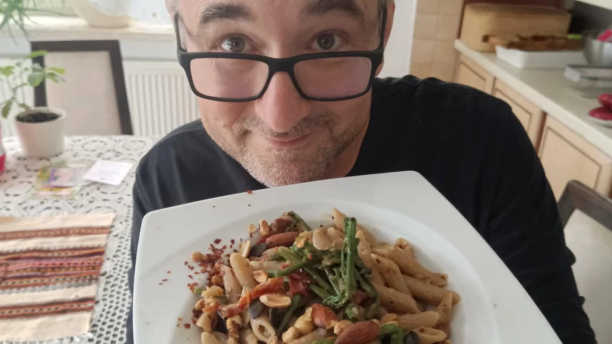 Makaron ze szparagami i orzechami włoskimi: