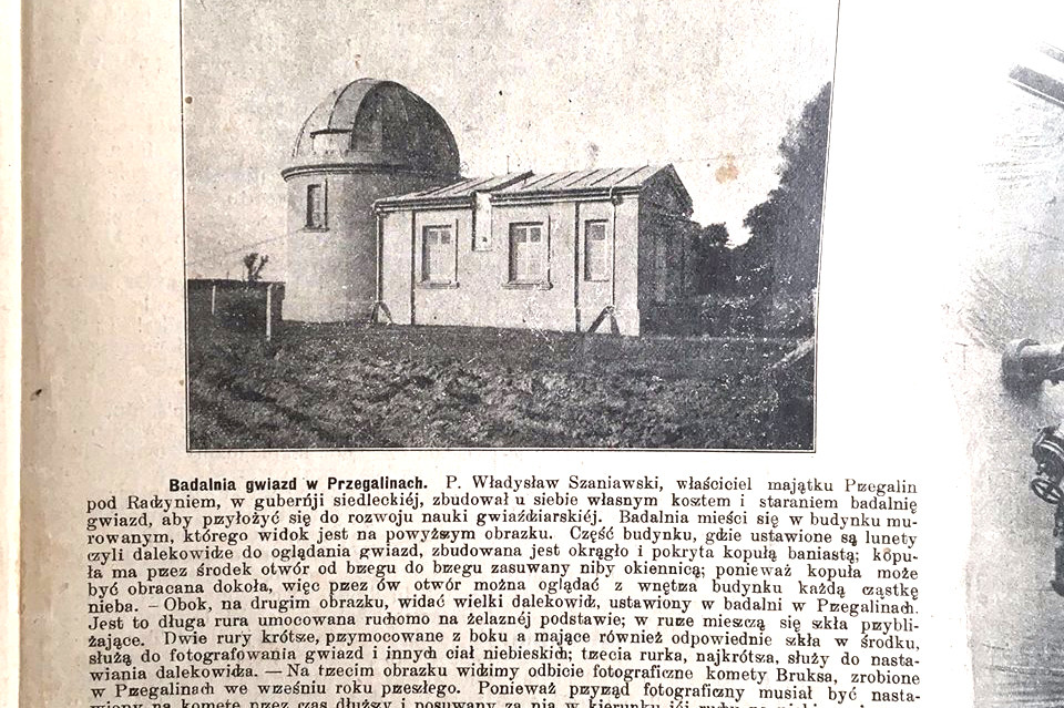 Syn jego, Władysław, pasjonował się nauką i technologią. Wedle ustnego lokalnego przekazu miał nawet skonstruować własnym sumptem i warsztatem samochód. Głównym tytułem do sławy były jego obserwacje astronomiczne i będące ich owocem artykuły naukowe. Dokonywał ich ze zbudowanego specjalnie na przełomie stuleci obserwatorium. Oto, jak opisywała je w 1912 roku, ukazująca się w Warszawie Gazeta Świąteczna (za zwrócenie uwagi na wycinki dziękuję p. Tomaszowi Młynarczykowi): Pan Władysław Szaniawski, właściciel majątku Przegalin pod Radzyniem w guberni siedleckiej, zbudował u siebie własnym kosztem i staraniem badalnię gwiazd, aby przyłożyć się do rozwoju nauki gwiaździarskiej. Badalnia mieści się w budynku murowanym (...). Część budynku, w którym ustawione są lunety czyli dalekowidze do badania gwiazd, zbudowana jest okrągło i pokryta kopułą baniastą; kopuła ma przez środek otwór od brzegu do brzegu zasuwany niby okiennicą, ponieważ kopuła może być obracana dokoła, więc przez ów otwór można z wnętrza budynku oglądać każdą cząstkę nieba. (...) Wielki dalekowidz, ustawiony w badalni w Przegalinach. Jest to długa rura umocowana ruchomo na żelaznej podstawie, w rurze mieszczą się szkła przybliżające. Dwie rury krótsze, przymocowane z boku a mające również odpowiednie dwa szkła w środku służą do fotografowania gwiazd i innych ciał niebieskich, trzecia rurka, najkrótsza, służy do nastawiania dalekowidza.