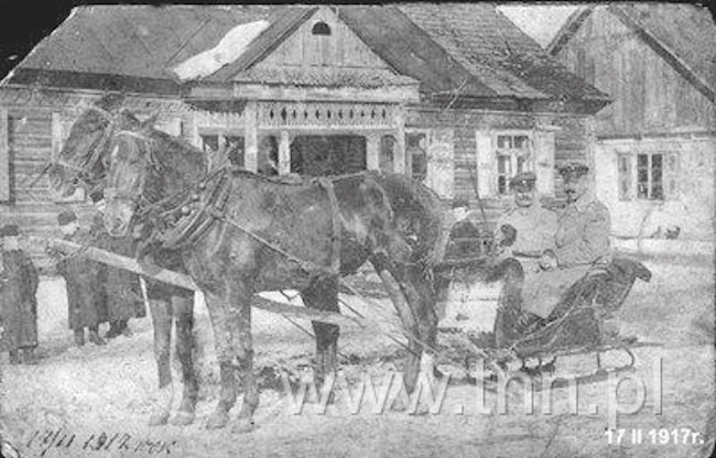 Później tą samą fotografię odnalazłem - z podobnym opisem - w kilku miejscach w internecie, często z błędnie odczytaną datą 1917. Zdjęcie wykonano w lutym 1912. Za saniami widzimy grupę chłopców, ze stroju sądząc najprawdopodobniej Żydów.