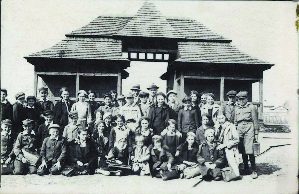 KulturaRadzyń Podlaski, lata trzydzieste XX wieku. Grupa młodzieży przed wybudowanym ok. 1932 basenem miejskim.