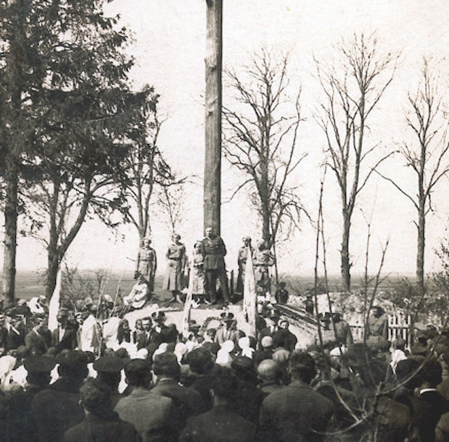 W Jabłoniu w 1935 usypano okazały kopiec, ogrodzony, zwieńczony krzyżem i opatrzony stosowną tablicą. Miejsce to (dzisiejsza ulica Augusta Zamoyskiego, po prawej stronie jadąc w kierunku wsi Dawidy) było aż do wybuchu wojny stałym miejscem wszelkich obchodów patriotycznych, w tym oczywiście kolejnych rocznic związanych z Piłsudskim. Uczestniczyła w nich młodzież szkolna, uczniowie oraz mieszkańcy. Po drugiej wojnie światowej na polecenie nowych władz kopiec zrównano z ziemią. Wzniesiono tam budynki Gminnej Spółdzielni Samopomoc Chłopska, obecnie teren znajduje się w rękach prywatnych.